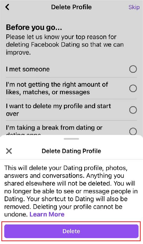 Necessary: Deleting your Fb Courting profile is not going to delete your Fb account. You’ll nonetheless be capable to use Fb as normal.